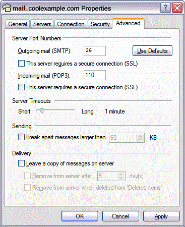 - (Optional) If you want to keep a copy of email messages stored on your email provider's servers, in theDelivery section, select Leave a copy of messages on server.